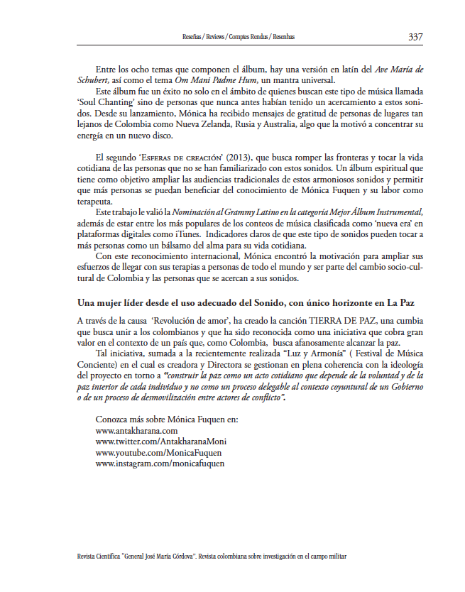 Reseña Revista Científica “General José María Córdova”.
